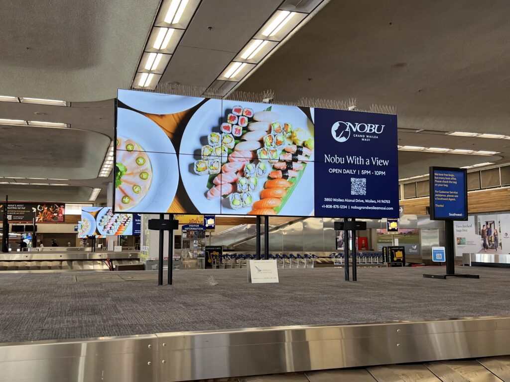The campaign generated significant visibility across key airport touchpoints, successfully announcing Nobu’s opening and reinforcing its connection to the Grand Wailea. The strong launch presence helped drive awareness and positioned Nobu as one of Maui’s premier dining experiences.
